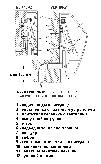 - Антивандальный писсуар с радарным датчиком автоматического смывания