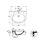 Умывальник-столешница 500х380 мм (крепление на кронштейнах арт. 61034-00-001) кронштейны входят в комплект.