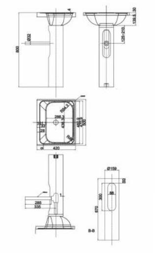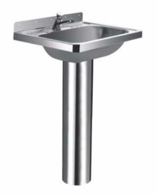 Раковина одинарная с пьедесталом. Сталь нержавеющая 304 AISI, толщина 1,2-1,5 мм., поверхность матовая.